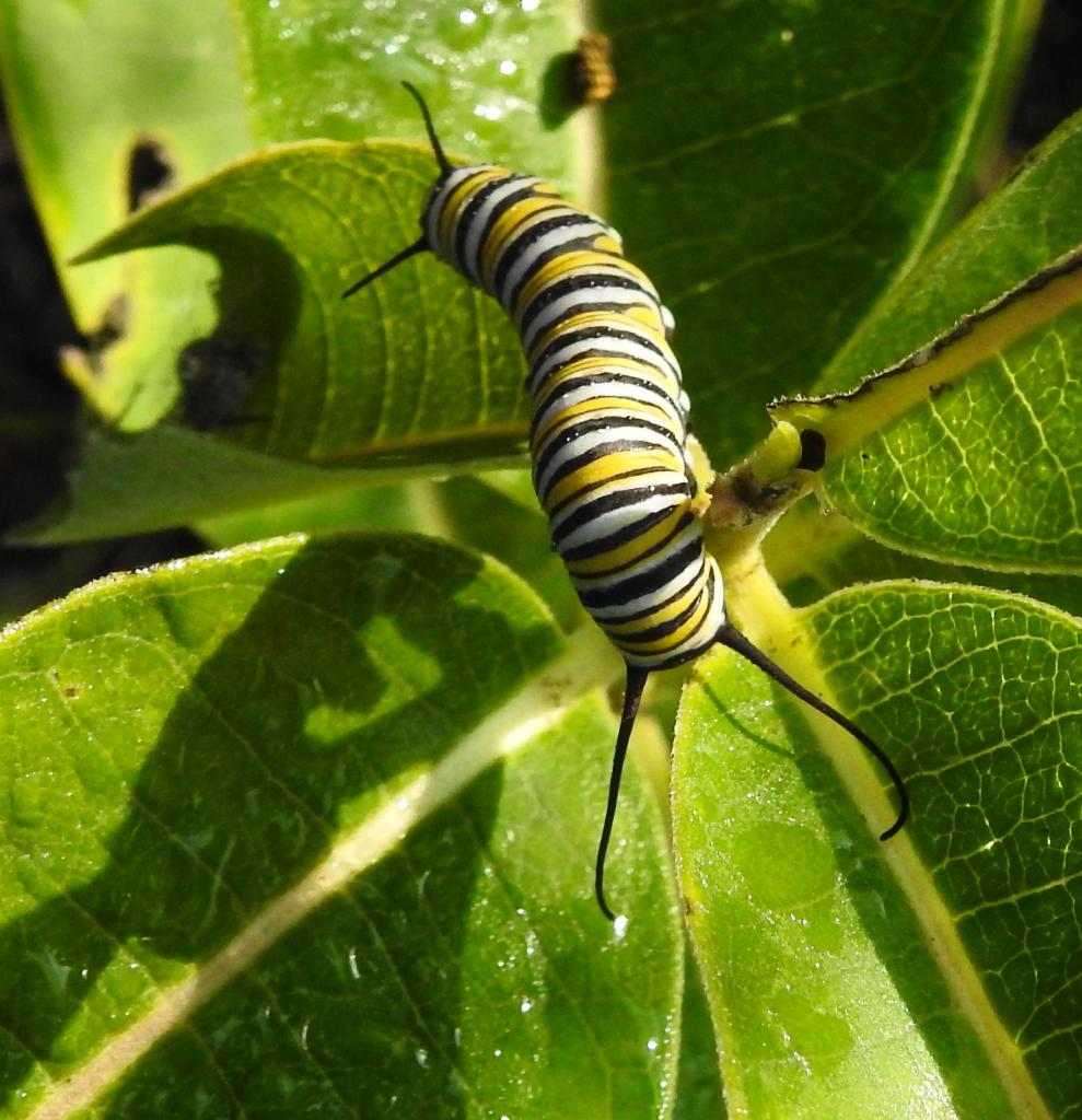Milkweeds had monarch caterpillars and milkweed tussock moth caterpillars.