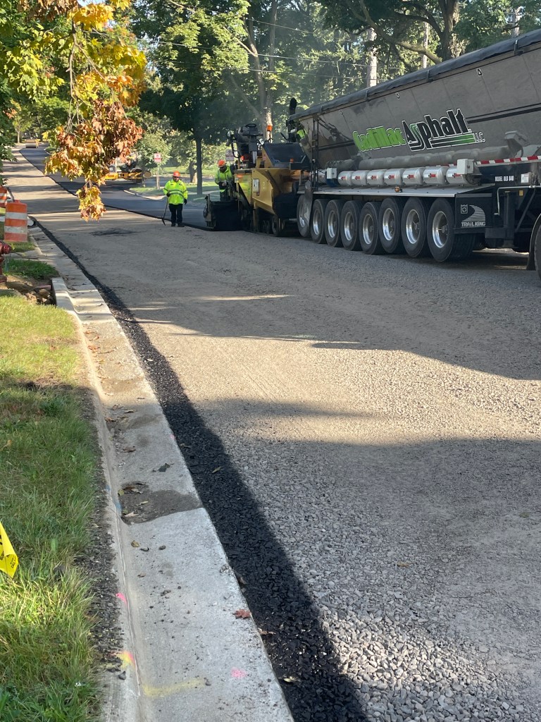 The first layer of asphalt has been laid on most of Saunders Crescent and Hatcher Crescent. Supposidly the entire project will be done by Saturday. This project started in late March, so it will be a relief to everybody on the “Crescents” to see it completed.