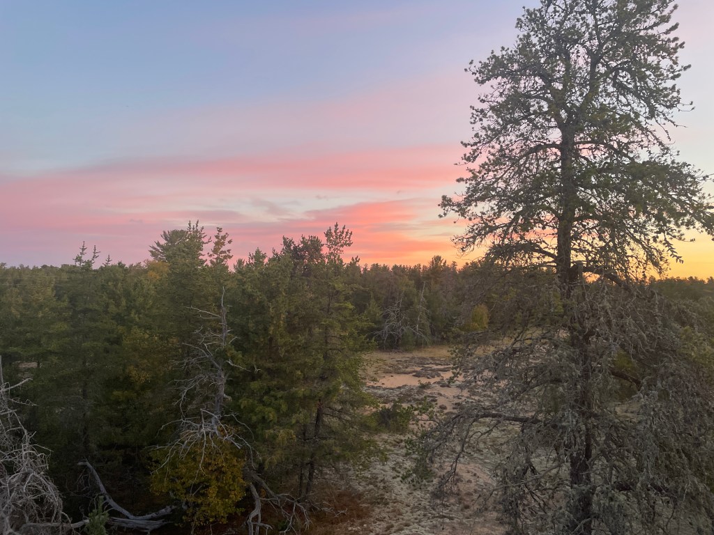 This morning it is much calmer and there was an amazing sunrise. This is looking north from the upper deck.