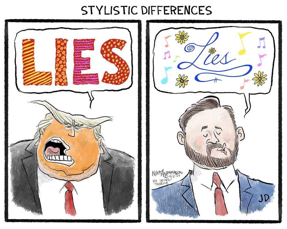 Bombastic lies versus suave lies – regardless, they’re still lies.