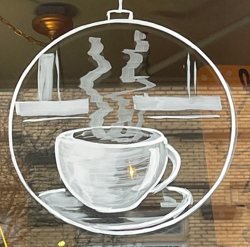 Speaking of coffee and hot drinks is the time of year when the Brush Monkeys start decorating windows throughout town. Here I’m staying with the coffee/hot drink theme.