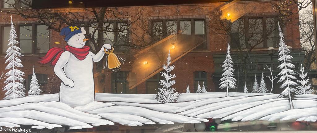 Somehow a snowman with a UM hat and ringing a bell seemed appropriate for the New Pretzel Bell.