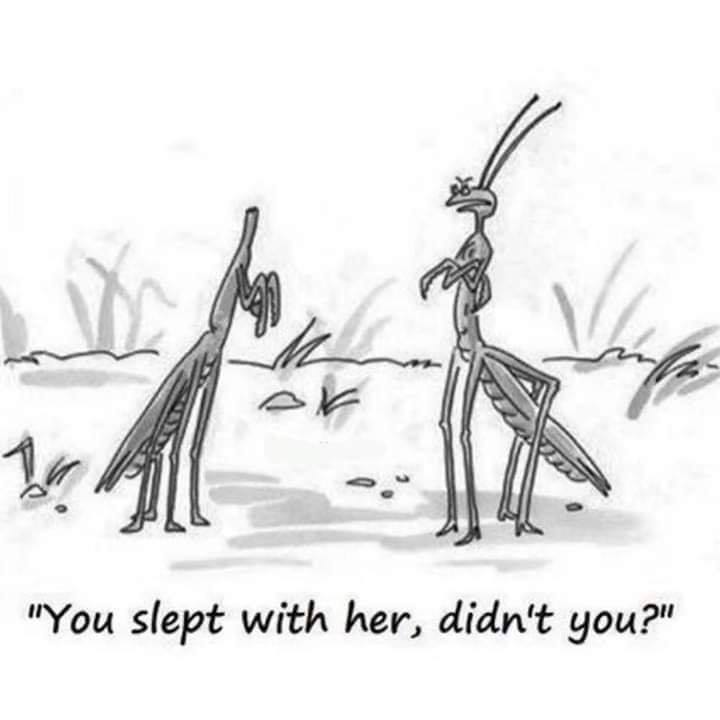 It was always interesting to my entomology students to hear that male mantises mated vigorously after the female ate his head. What was lest exciting was that the female then ate the rest of the male after mating. Makes you want to rethink the dinner and a date idea.