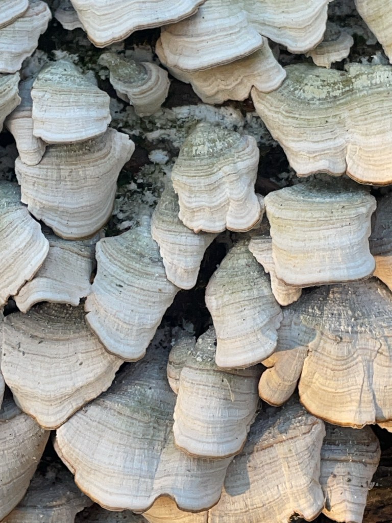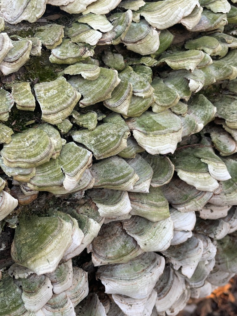 Since we had a lot of time to walked several trails seeing what we could find. I managed to find a downed tree that was covered with fungi. The fungus on the left is Violet-toothed polypore. The one on the right is Mossy-maze polypore. Hurray, new fungi for 2025.