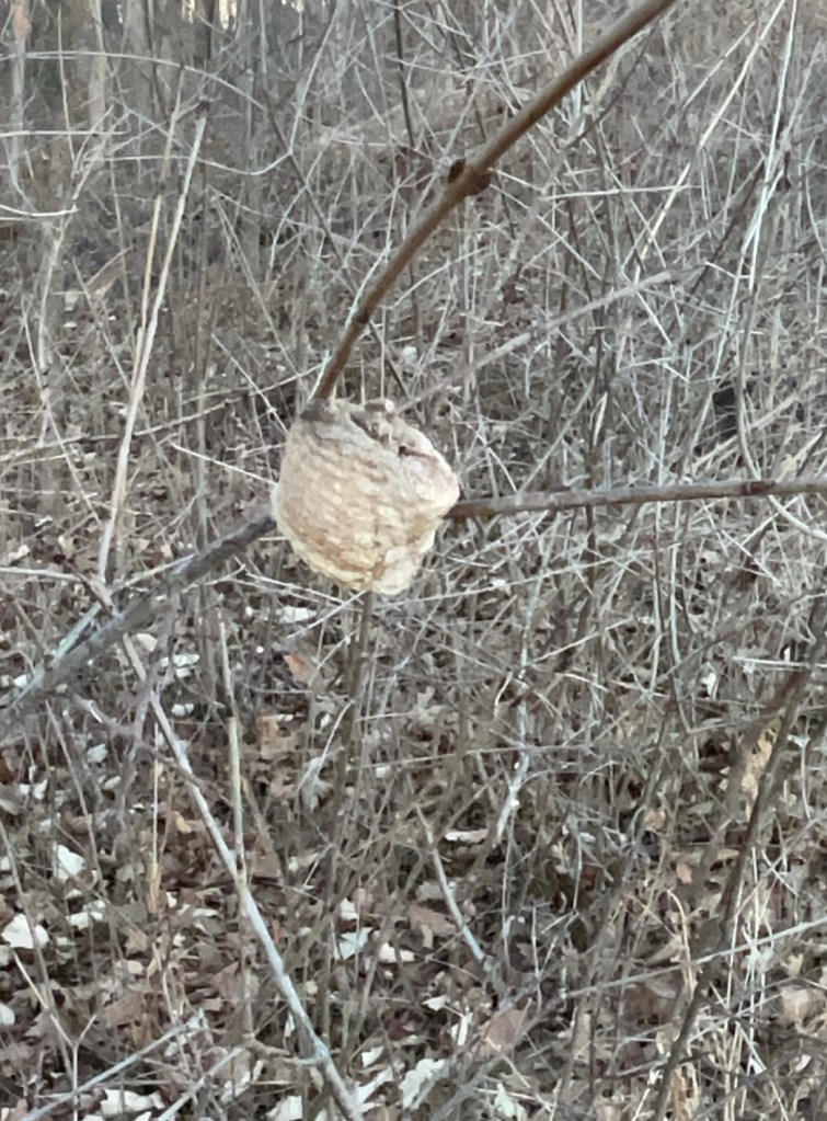 The Susan spotted an egg mass from a Chinese mantis. These are much larger than those of the Preying mantis. It’s always nice finding signs of living insects in January.
