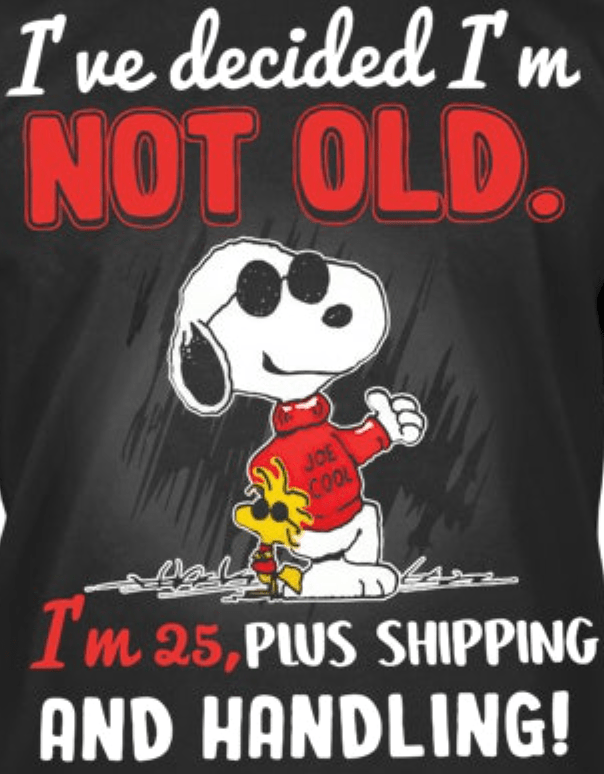Speaking of getting older, I really like this tee-shirt. Parts of me feel young, while others feel like shipping and handling.”