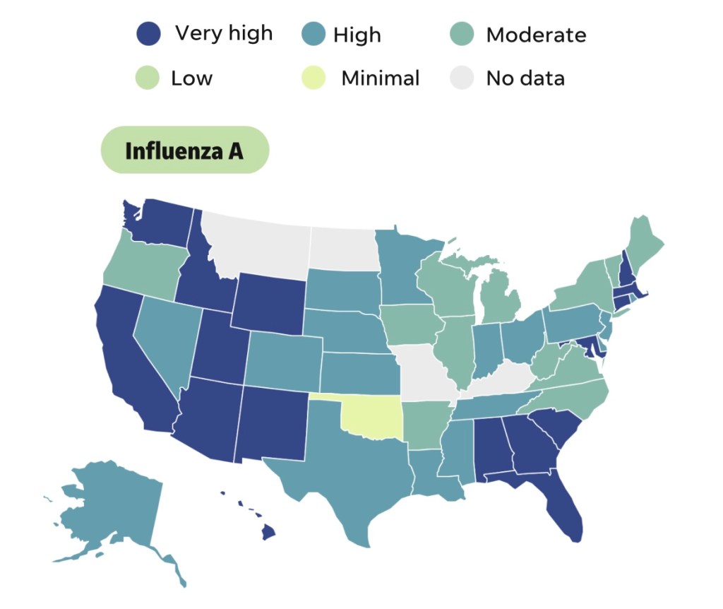 The situation two weeks with influenza when the west and southeast were getting hit hardest.