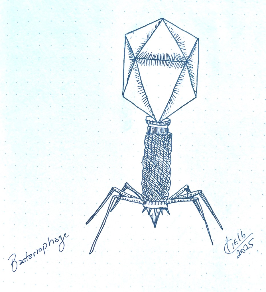 Even bacteria get viruses. This bacteriophage is a virus that attacks and destroys bacteria. So you can think of it as a viral friend.