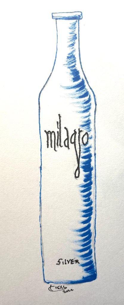 A tequila bottle and the Mayan glyph Zotz’ which is much smaller that it appears on screen.