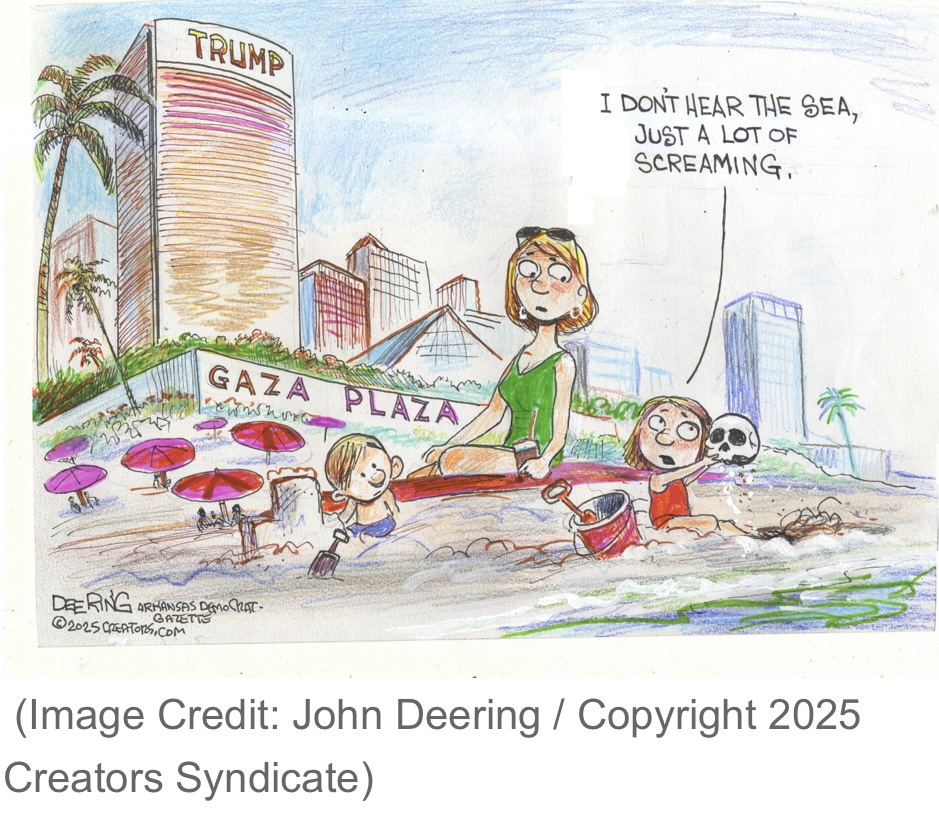 So much for the protest vote on Gaza. The President and Israeli leader have plans for removing all Palestinians and turning Gaza into a vacation paradise.