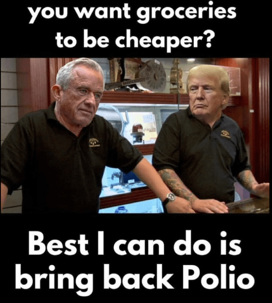 Thanks to having RFK on the cabinet we can now see diseases that we haven’t in years. Since the election there have been outbreaks of TB, measles and a huge increase in influenza.