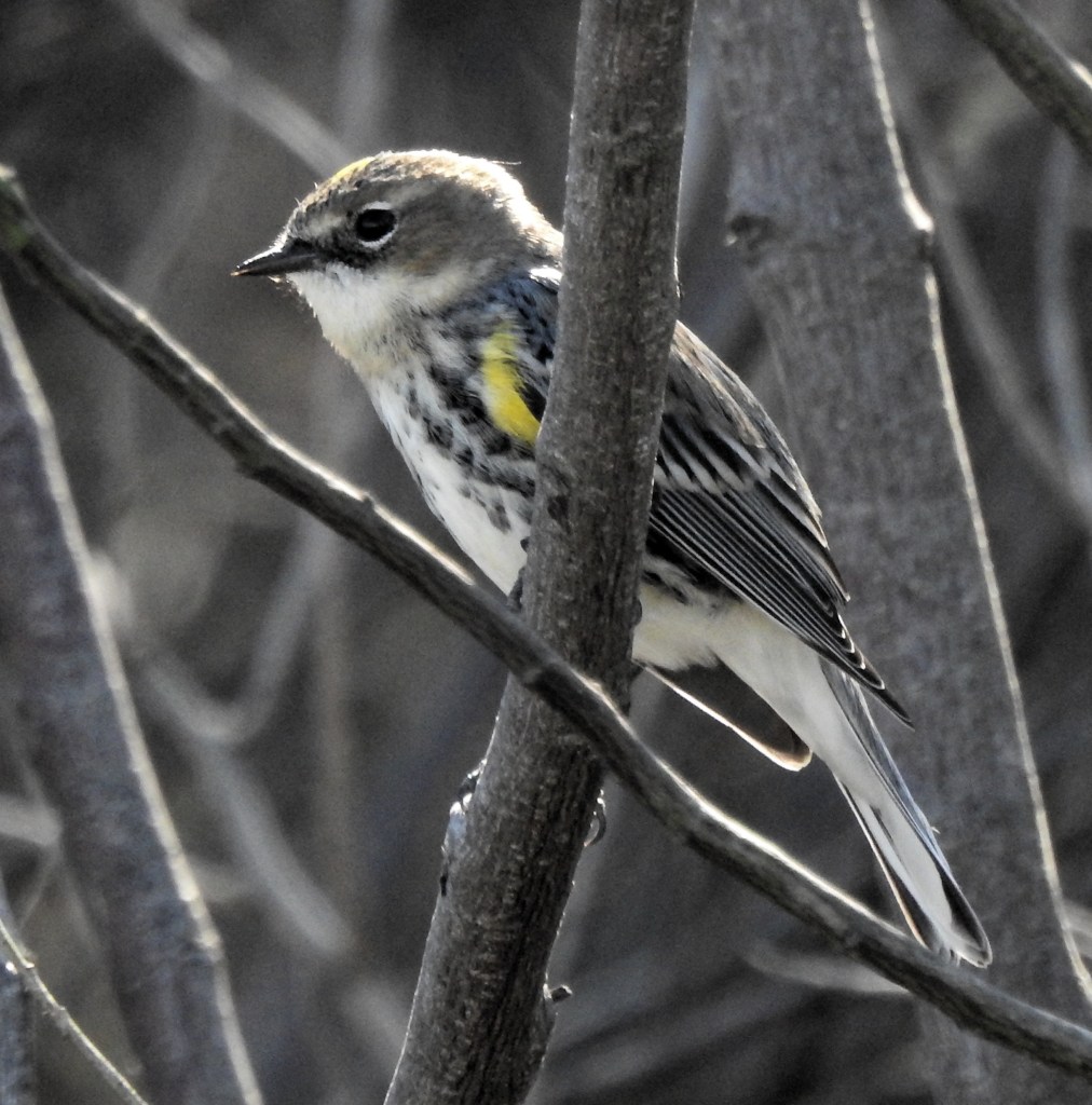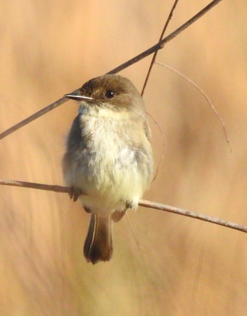 But we’re down in the south for the birds, plants and insects. The Yellow-rumped (Myrtle) Warbler on the left was one of hundreds that we’ve seen so far. The Eastern Phoebe on the right was actively hawking insects.