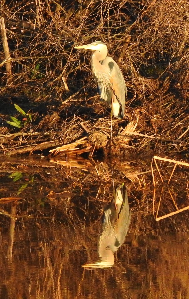 A Great Blue Heron and it’s reflection in the setting sun is a fitting was to end the blog for today.