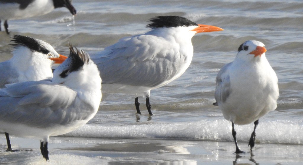 Royal Terns (left) outnumbered Sandwich Terns (right) 50:1.