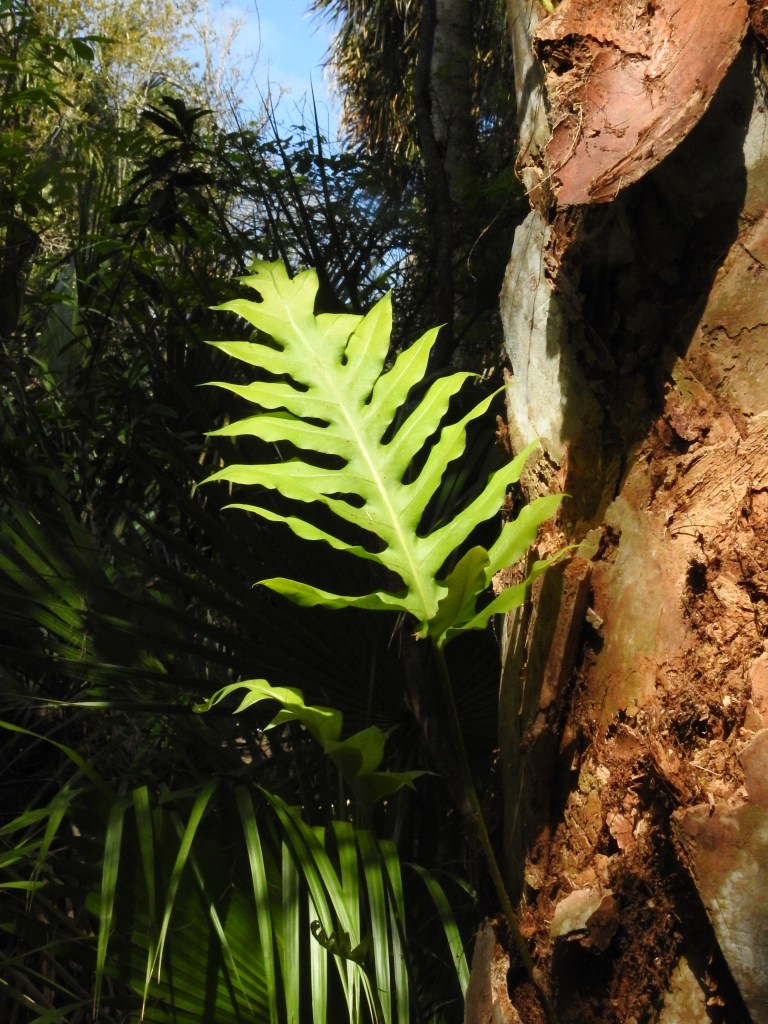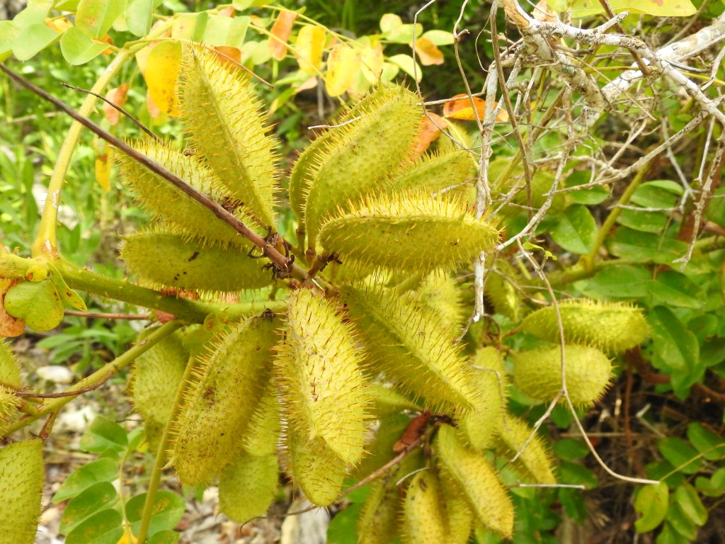 Interesting woody plants included red mangrove (left), green buttonbush (middle) and nickerbean (right).