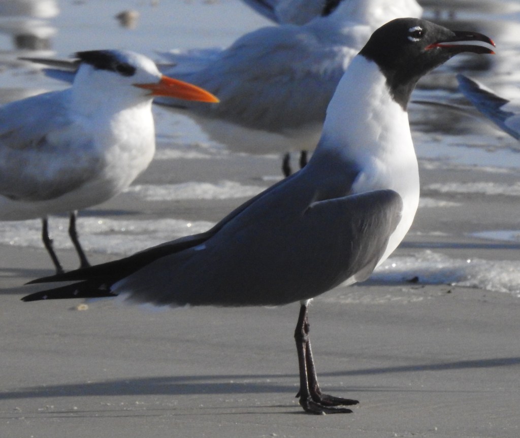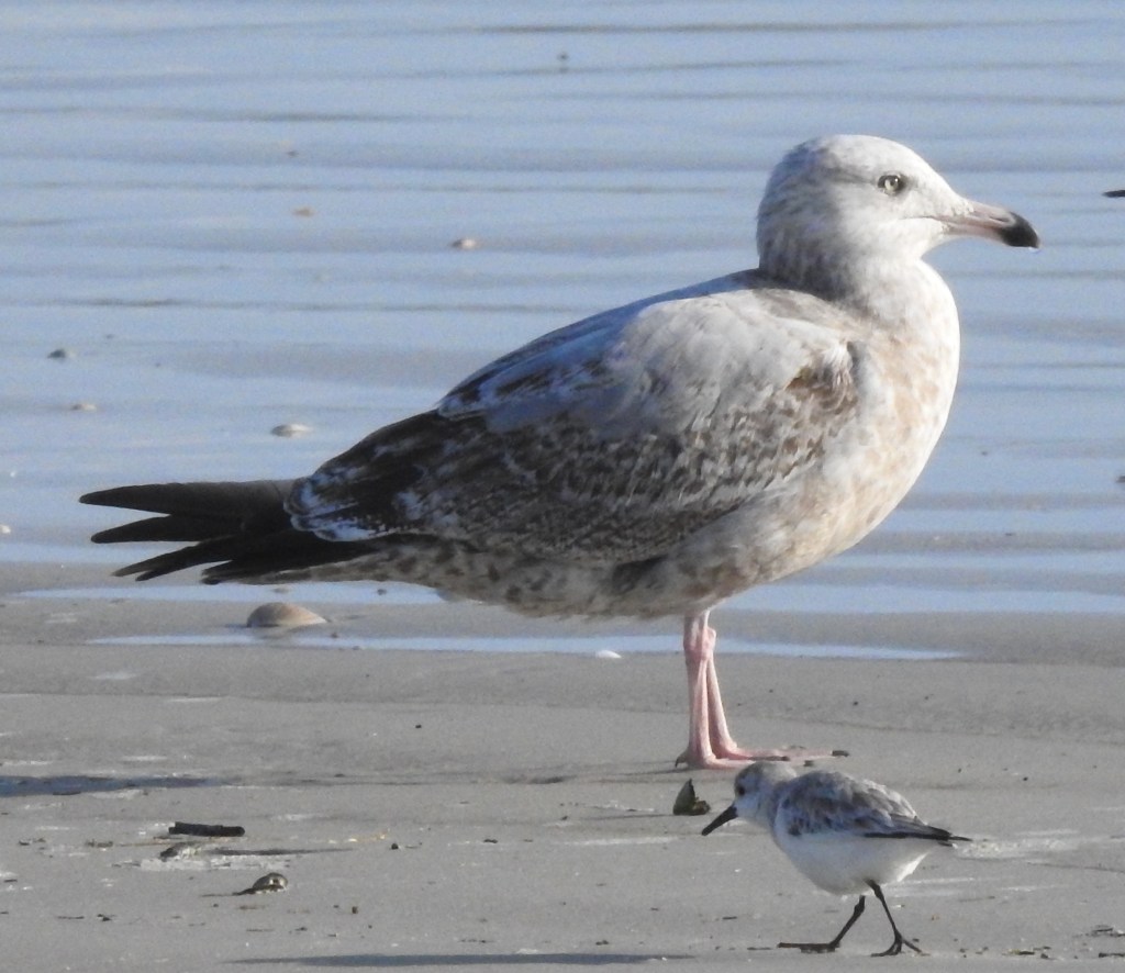 Laughing Gull (left) and Herring Gull (right) with a Sanderling which is much smaller.