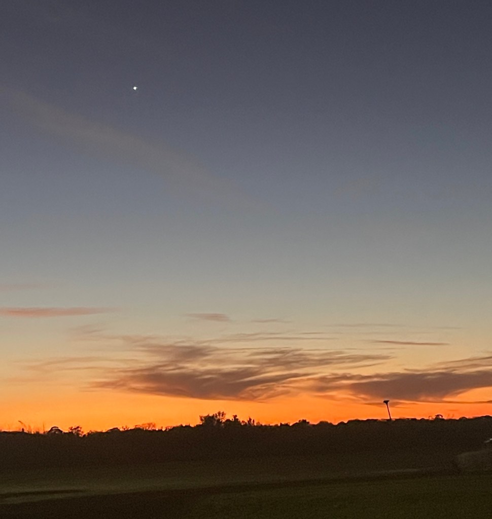 Sunset the other night as Susan and I were settin up moth sheets at the Marine Discovery Center in New Smyrna Beach, Florida. The bright object in the sky is Mercury.