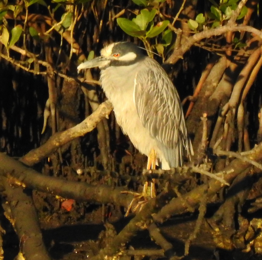 While photographing the night-heron I was quickly distracted by two buzzy warbler songs. They were coming from Prairie Warblers.