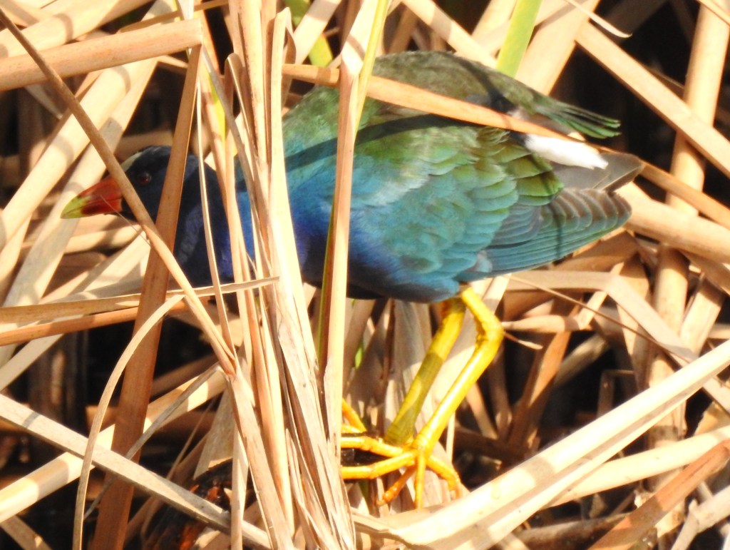 Both Purple Gallinule (left) and Gray-headed Swmphen (right) are common here.