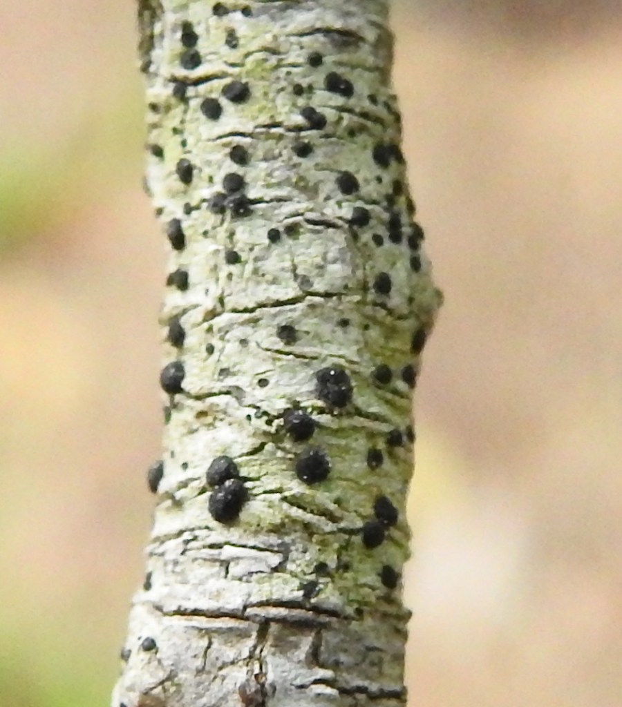 Thes blood-spot lichens were also on the same twig.