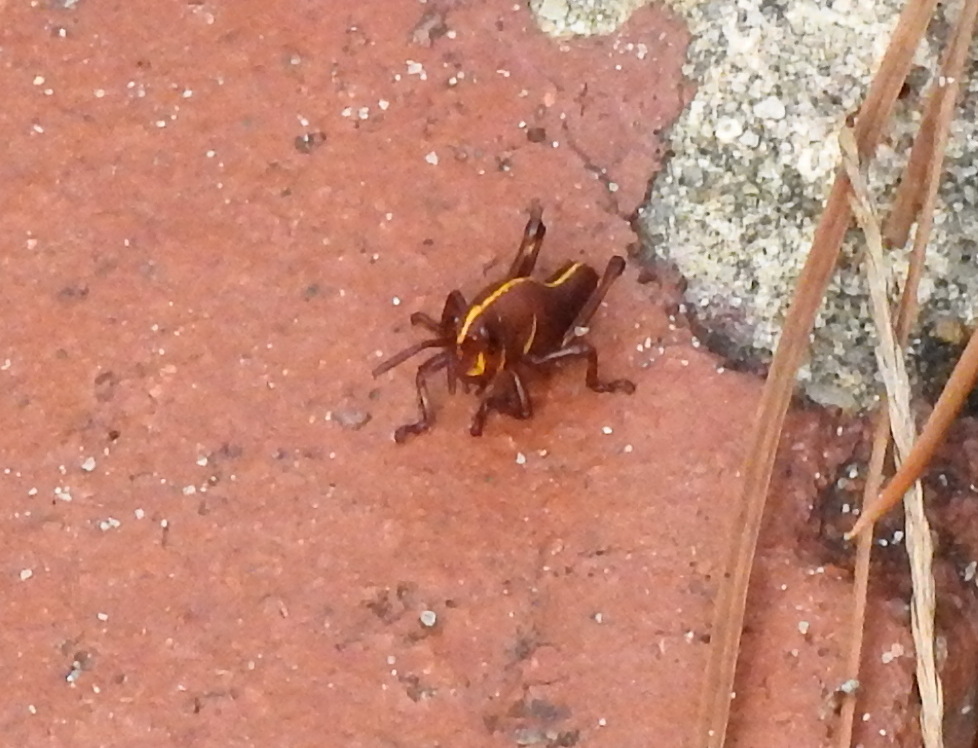 We had numerous groups of 40-60 early instars of eastern lubber grasshoppers.