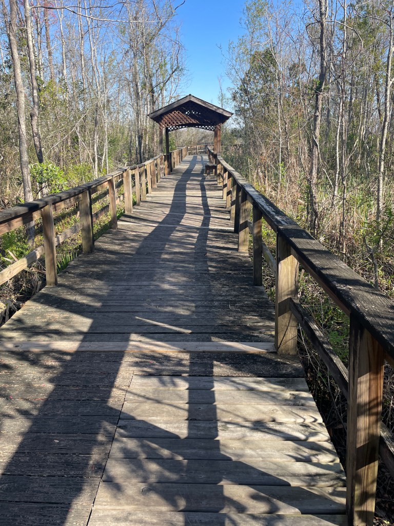 No matter how hard I try my days start early. We were staying in Saraland, just north of Mobile less than two hours from our destination on Dauphin Island. We had breakfast at the motel around 6:30 AM and were packed and ready to go by eight. Since we would be way too early to check in it was my task to find a place to go for a walk. This is what I found with very little effort.