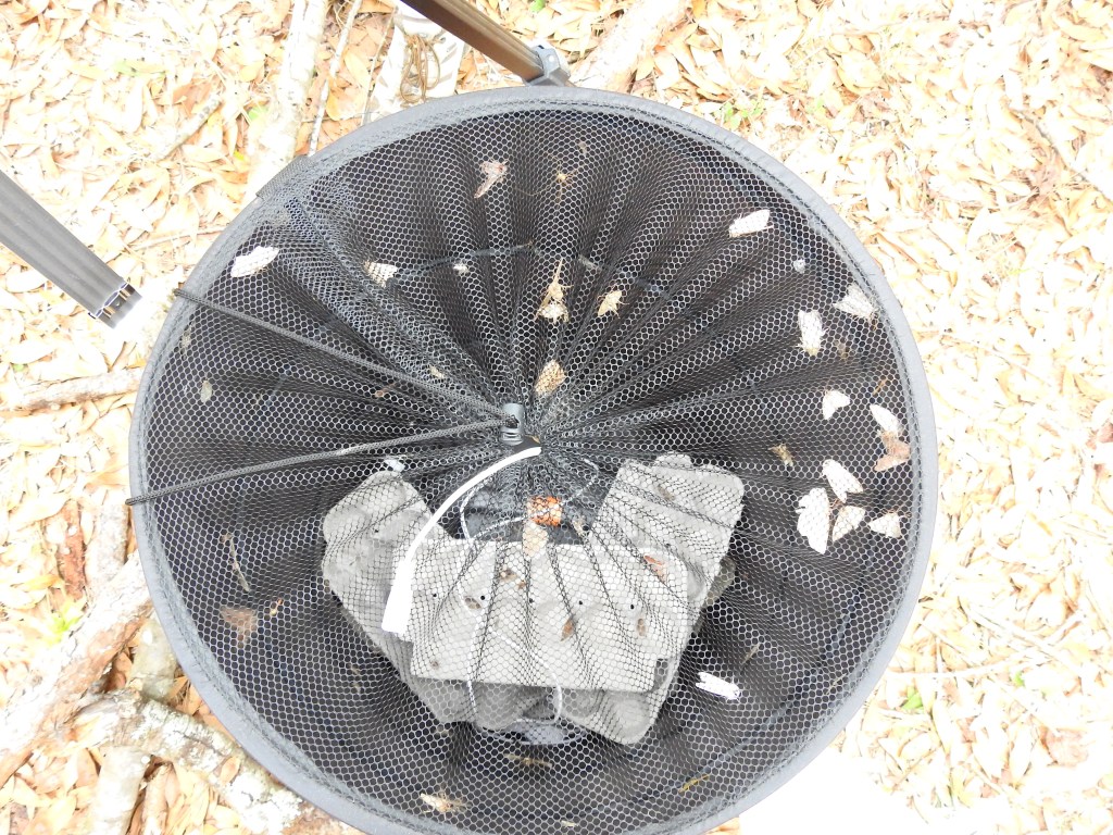 The view looking into the trap in the moring after it had been operating all night. All of the moths were released after photographing them.