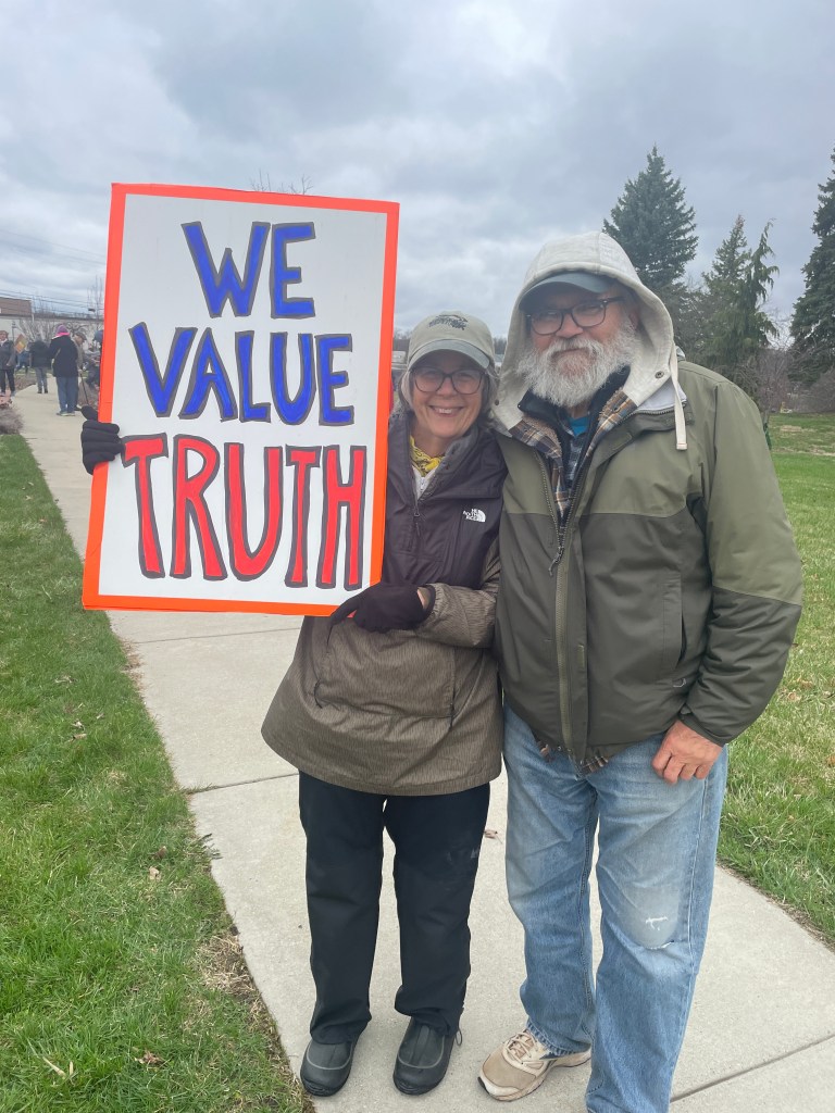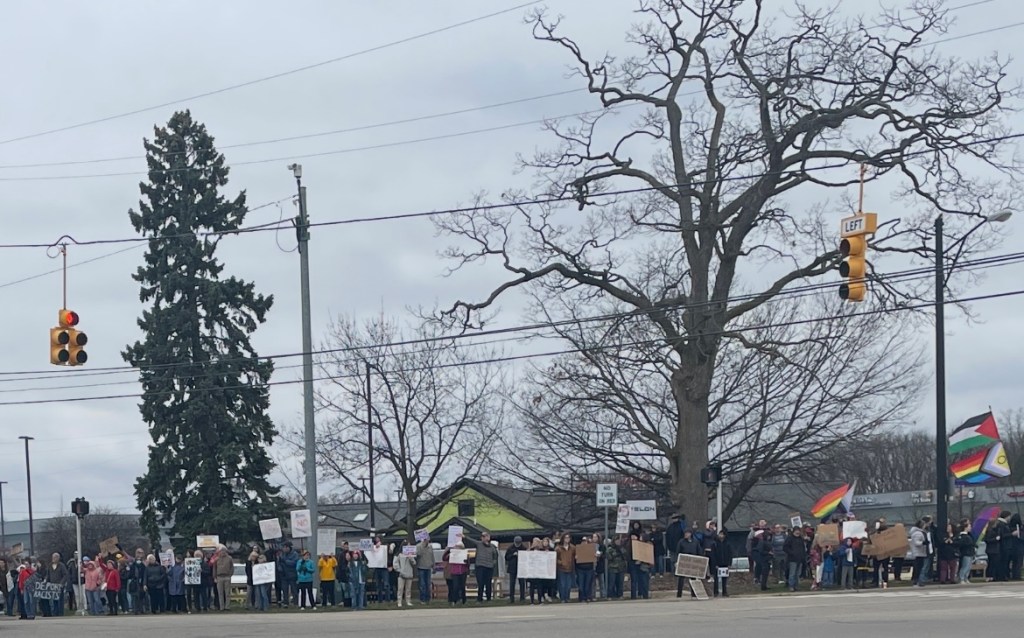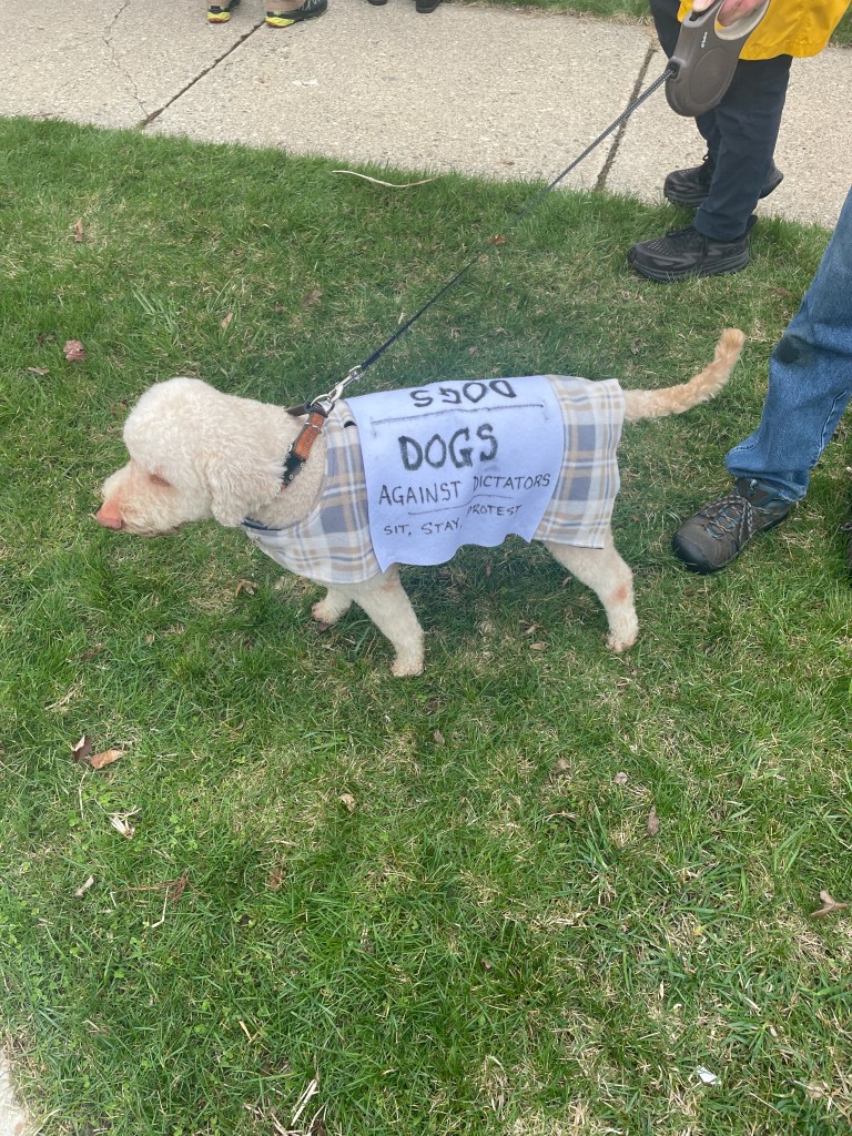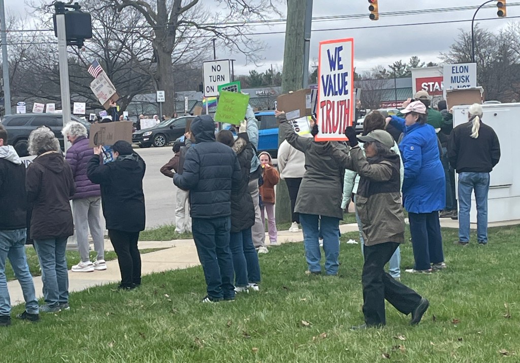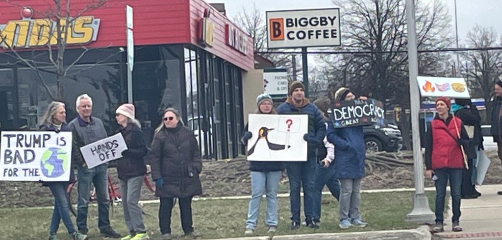 Susan and I went to the Hands Off Rally at Jackson and Maple Roads in the later afternoon in Ann Arbor. We had the pleasure of seeing several friends there – Chellie, Tom & Jodi (three friends who were with Susan earlier in the day at a similar rally in Ypsilanti), We also saw Meg, Hava & Sid. There were also 3-4,000 like minded people at the rally, as well as a lot of support from cars going through this very busy intersection.