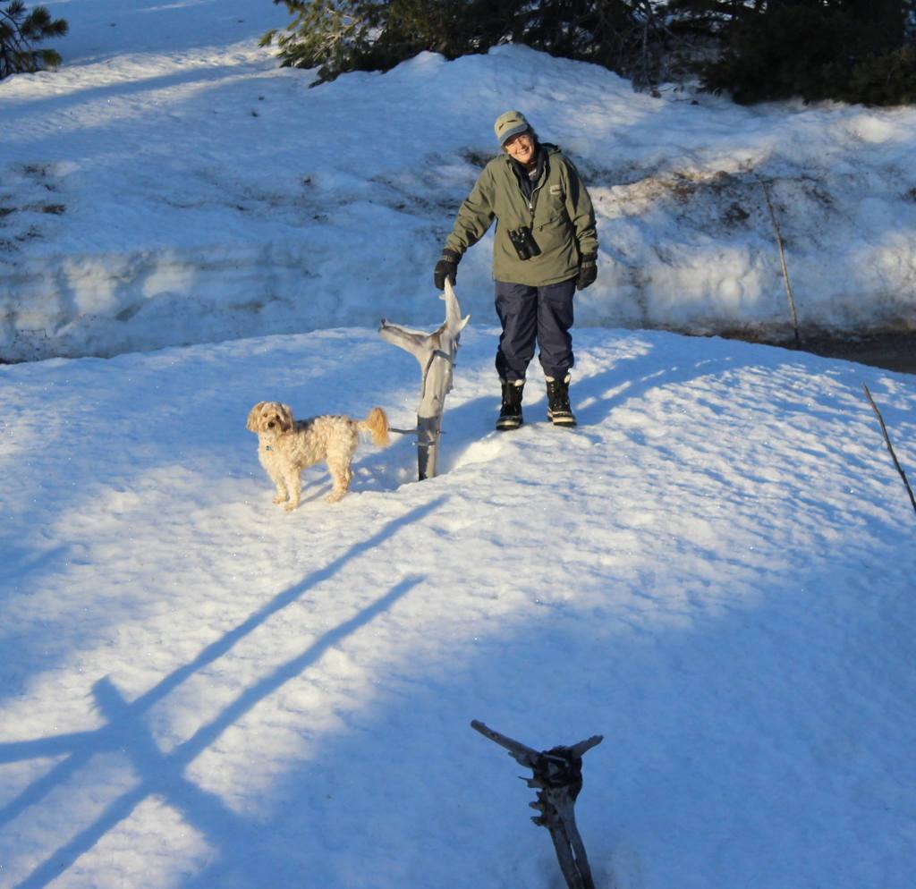 While we have had a lot of snow this year, it’s not an unusual amount. The photo on the left is Susan and Bruno on 11 April 2015, The photo on the right is the same view this year on the same date.