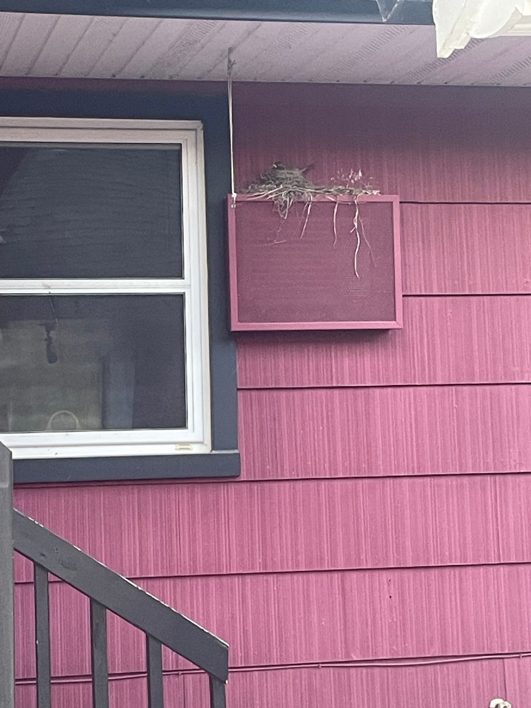 Going out the back door we are now home to a nesting American Robin. AT first she was quite disturbed with our coming and going. But she has gotten used to us being here.