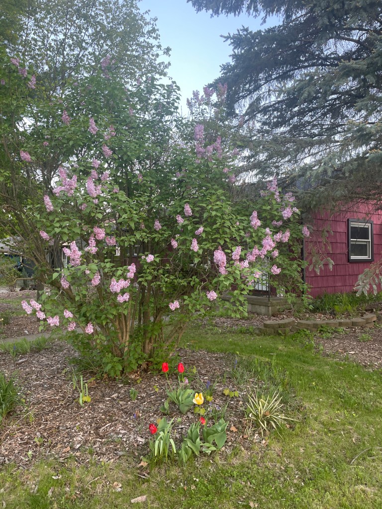 In the front yard our lilac is blooming. This shrub was a wedding present from our daughter Alexis 38 years ago. We’re getting to enjoy the flowers now and in a few weeks we’ll be enjoying them in the U.P.