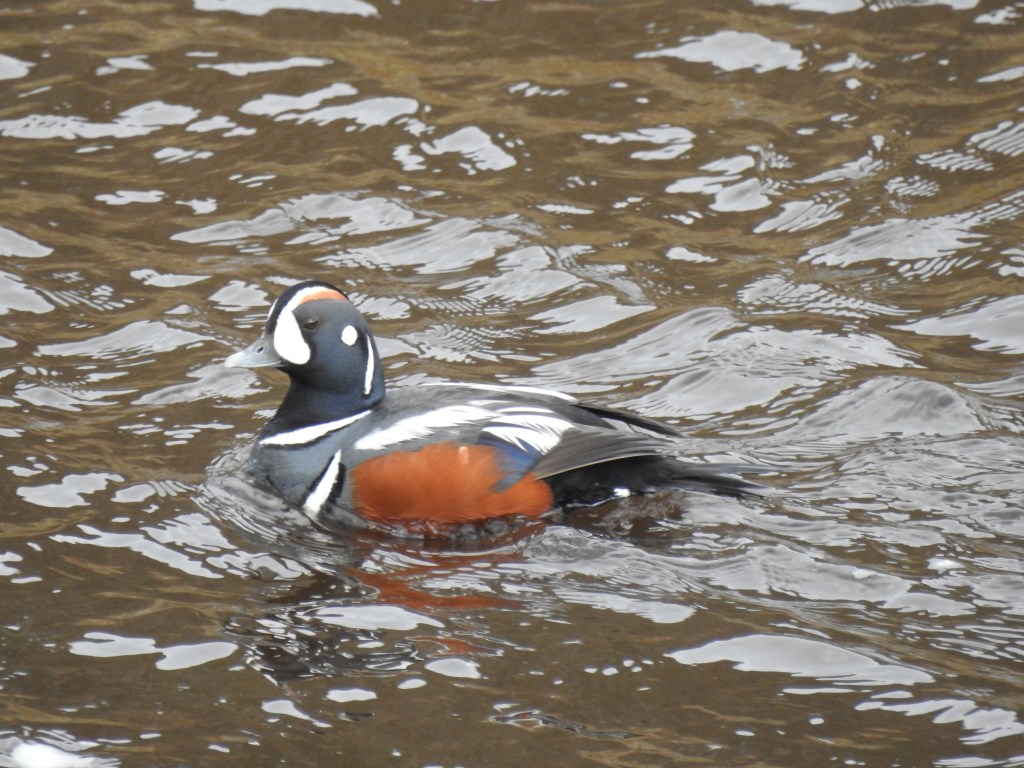 Male Harlequin Duck on the river.