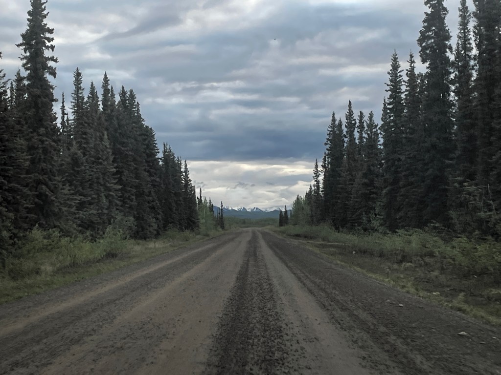 This highway is a beautiful gravel road through boreal forest.