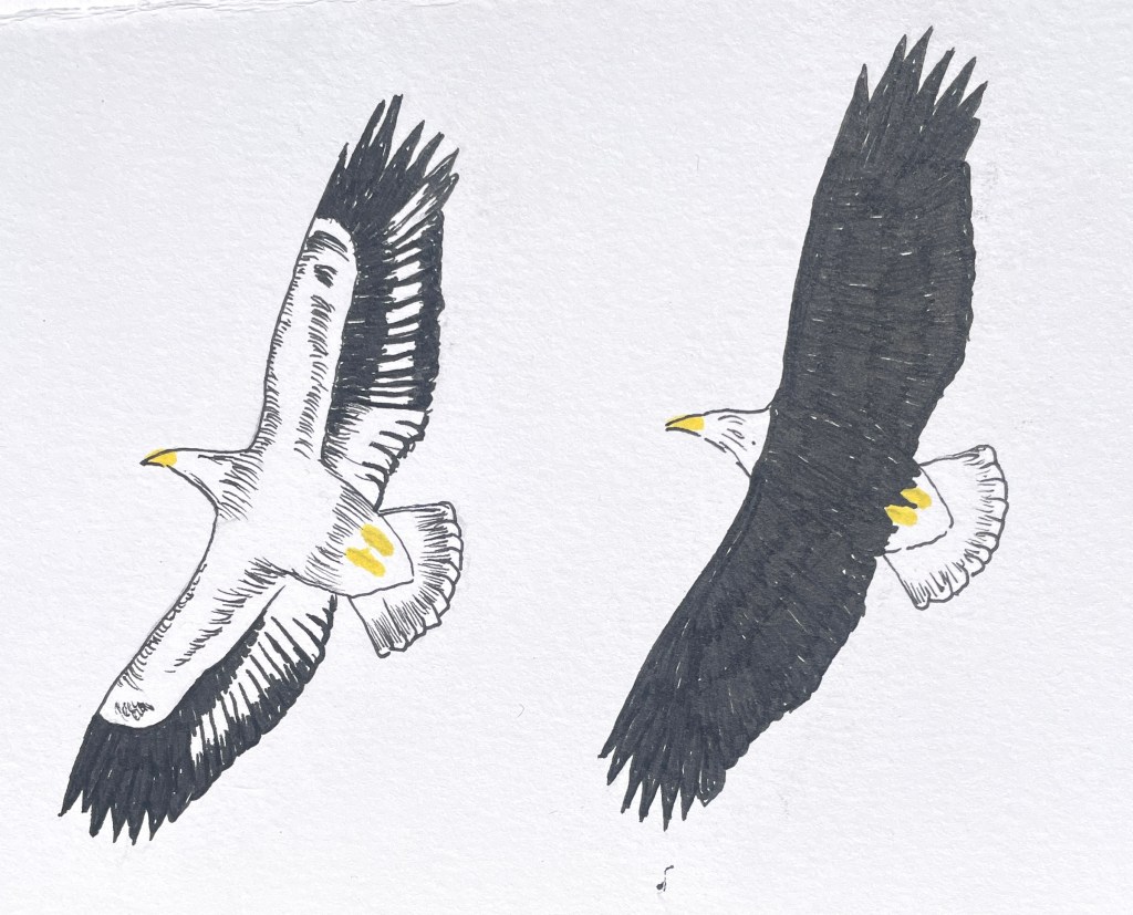 First, second, third and fourth year Bald Eagles (left to right) sketches by me.