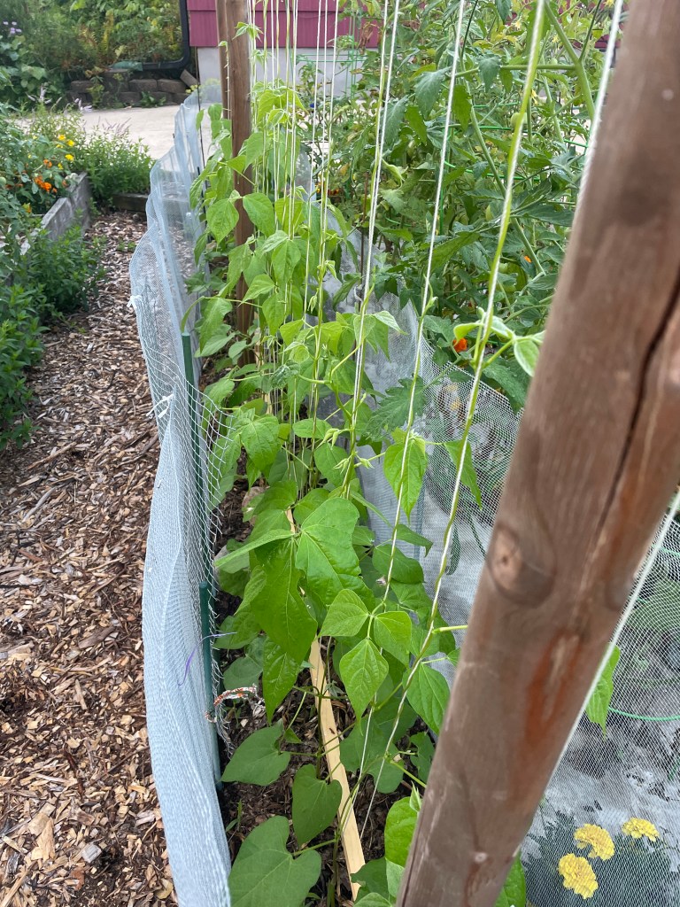 And finally one of the two rows of green bean plants that will provide us with fresh green beans and some to pickle for weeks.