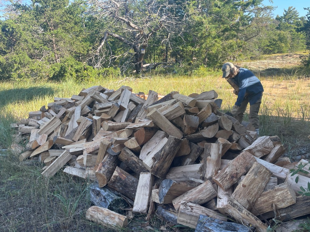 After emptying the wood shed we started refilling it with new dry wood. We had too much for the shed so the rest was stacked next to the shed and covered with tarps.