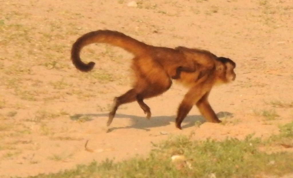 Perhaps it wanted to hang out with the Capuchin Monkeys, like this one with a baby. The capuchins here are the Black-striped Tufted Capuchin Monkey.