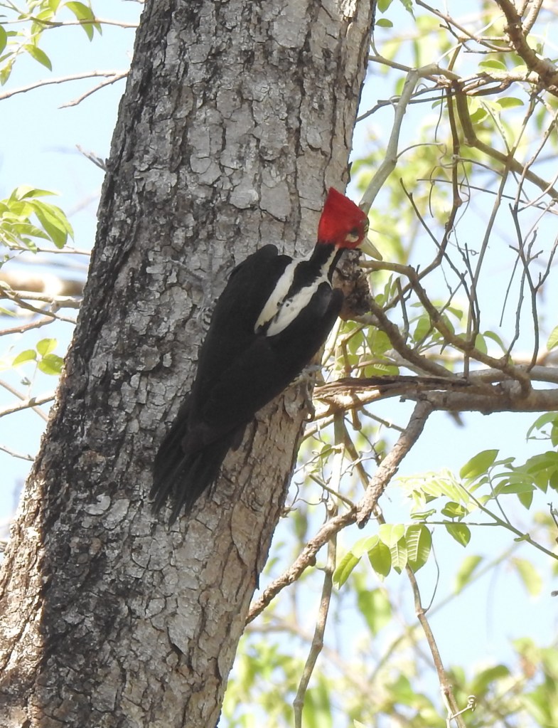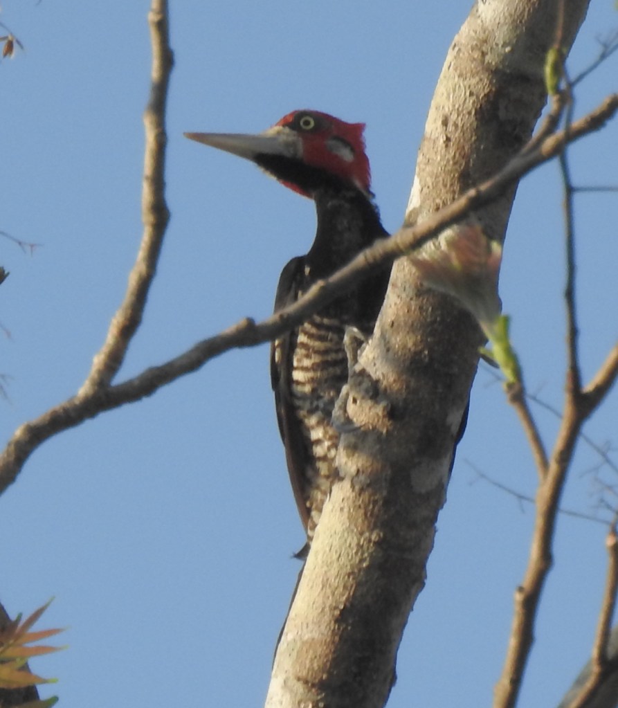 Crimson-crested Woodpecker teasing us at the back of a tree.