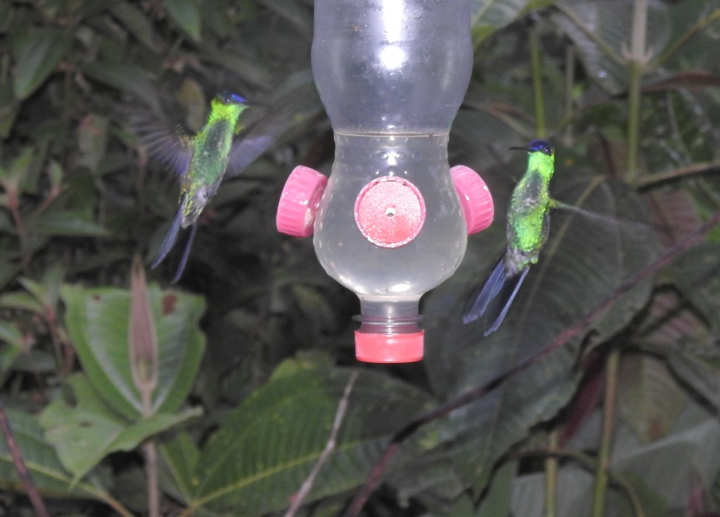 The feeders were often visited by multiple species simultaneously like the three species here.