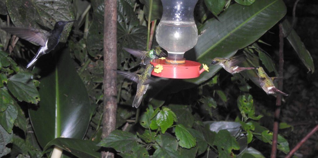 We spent a late afternoon into early evening at Jonas’ Hummingbird House. We were there at the same time as others, and all enjoyed the birds. There were fruit feeders and nine hummingbird feeders.