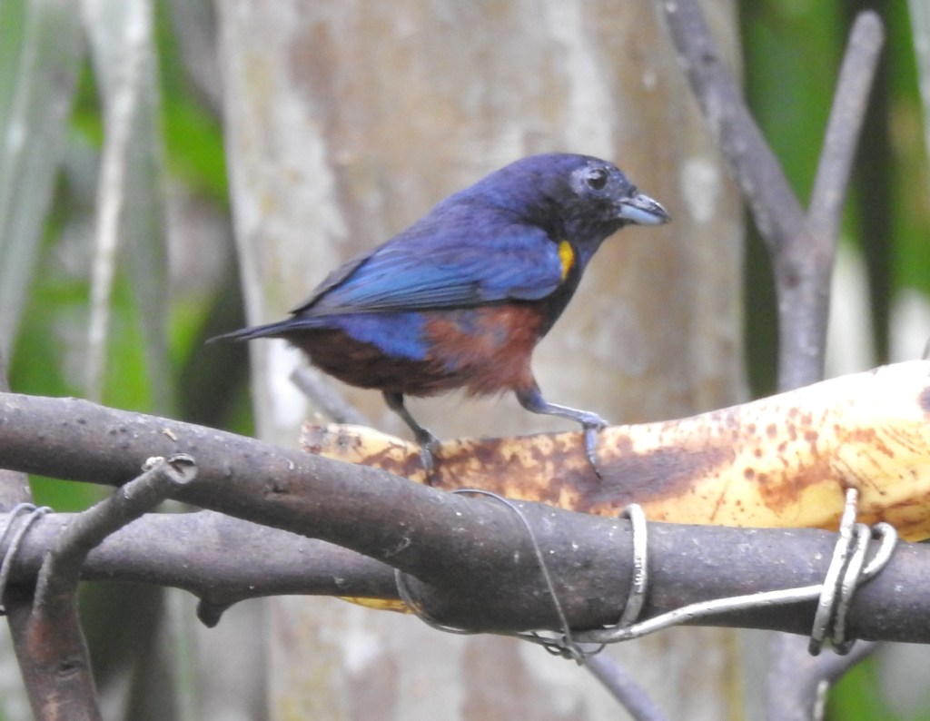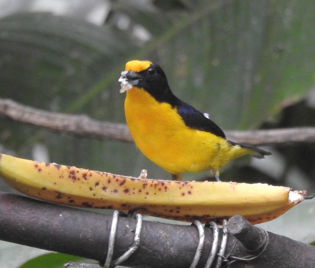 Violaceous Euphonia on the left, Saffron Finch on the right.