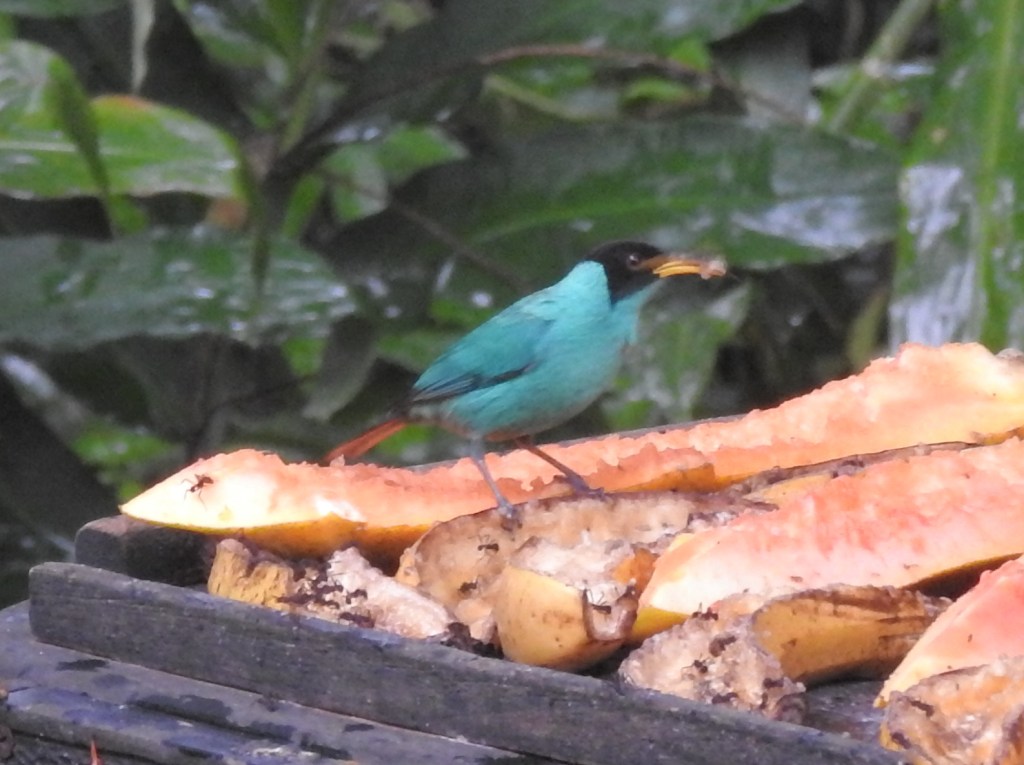 Green Honeycreeper feeding on papaya and bananas (both of which are changed daily).