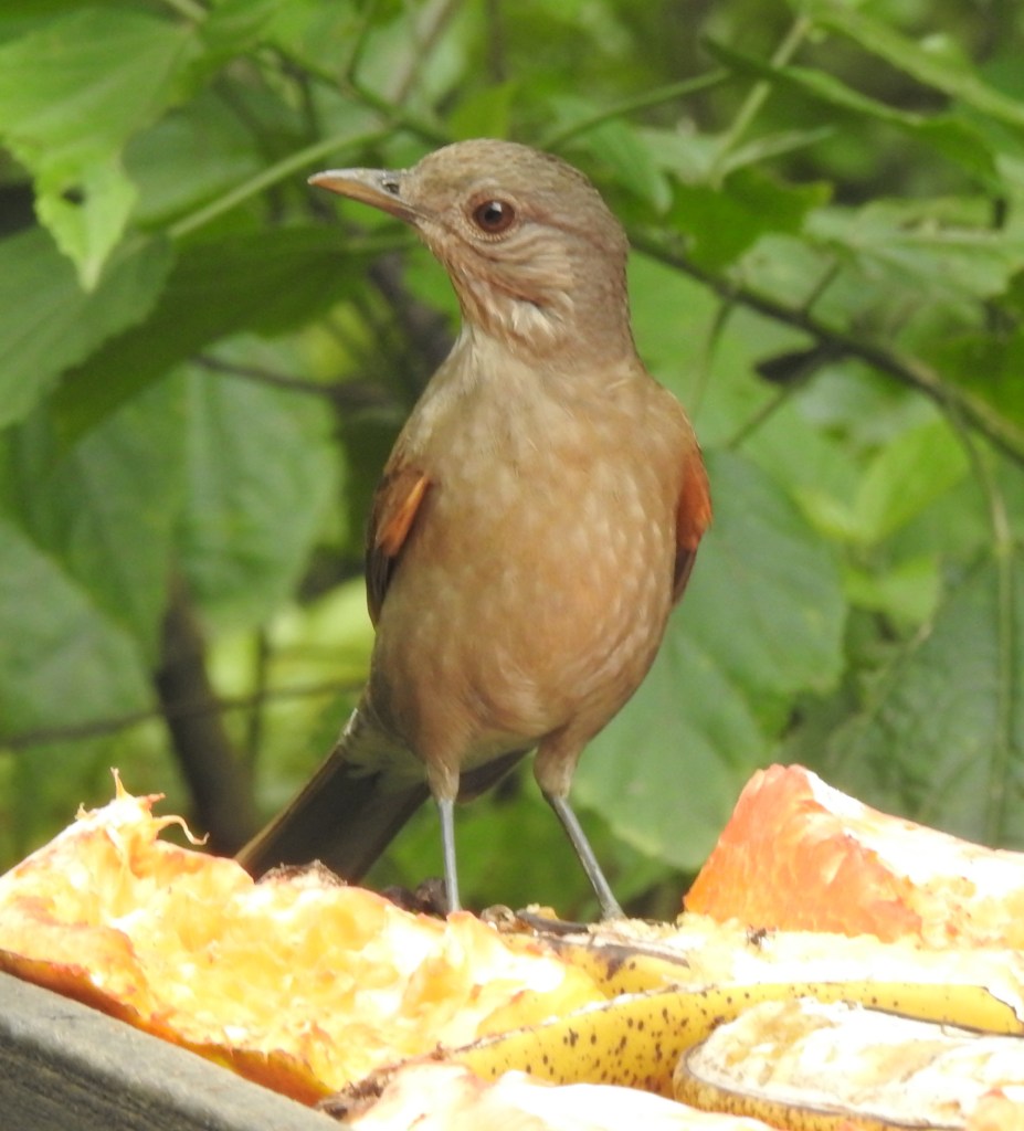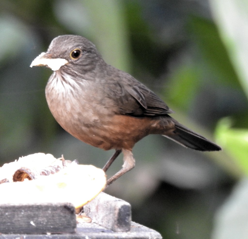 Pale-breasted Thrush and Saffron Finch at the feeders.