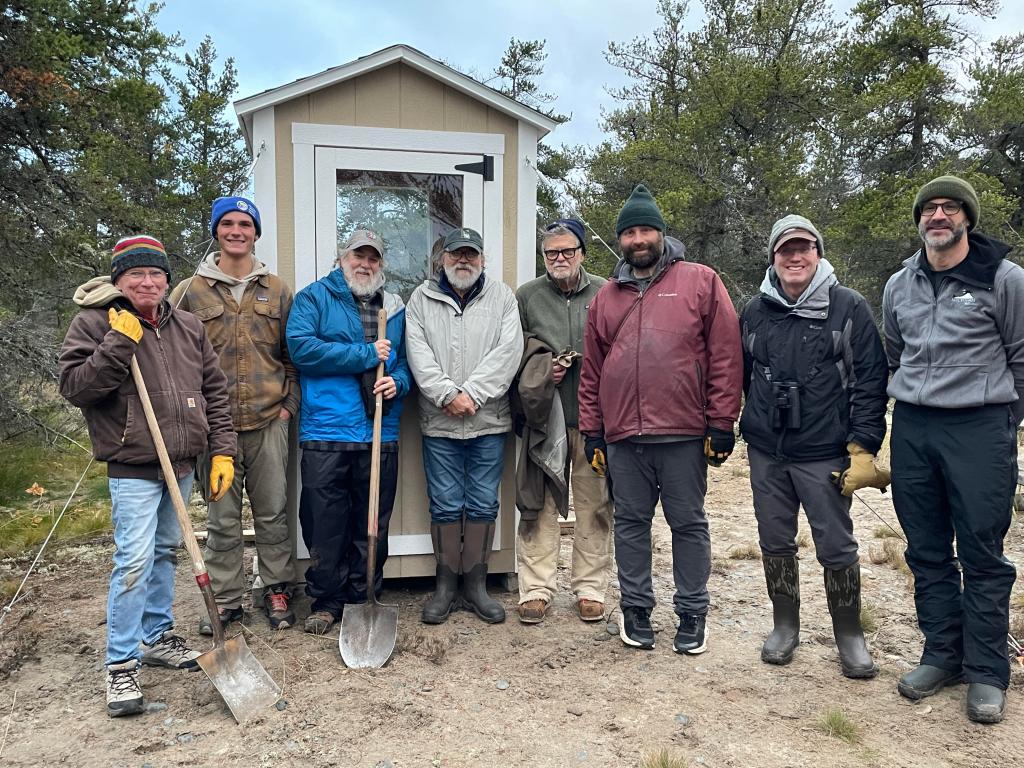Sitting at its winter home behind the moving crew – Kurt, Frank, Lynn, me, Jim, Clay, John and Max.