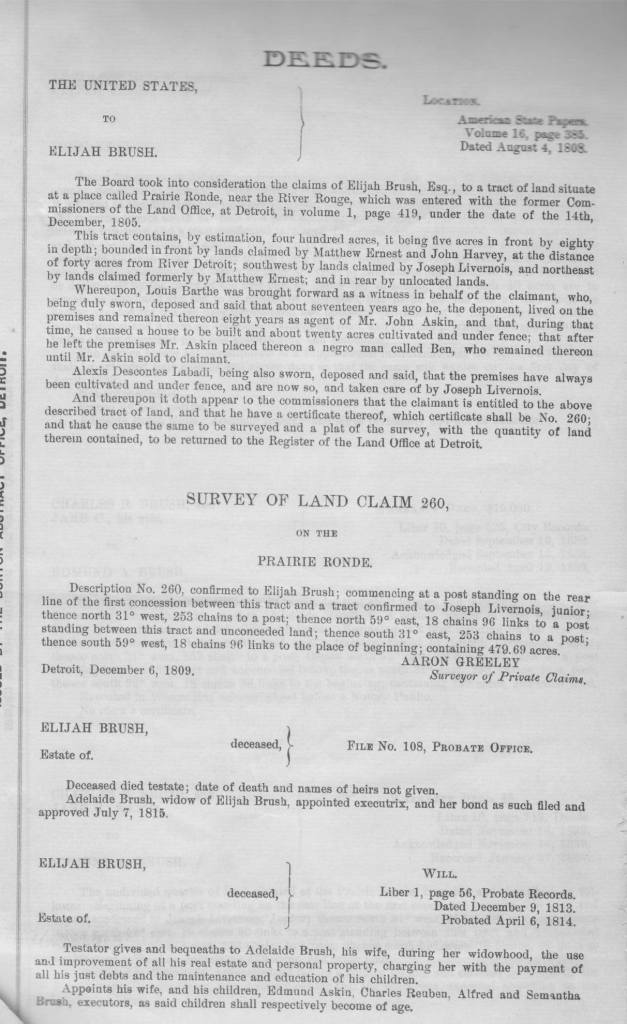 From 1808: “…the survey of Prairie Ronde from the Detroit River to the Michigan-Chicago Road (which become Michigan Avenue) and the land owned by Joseph Livernois west (the person for whom Livernois Avenue was named).”