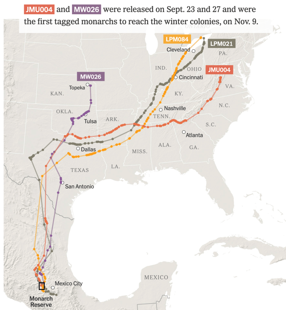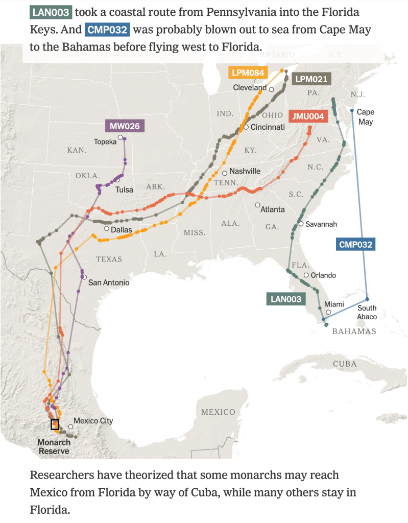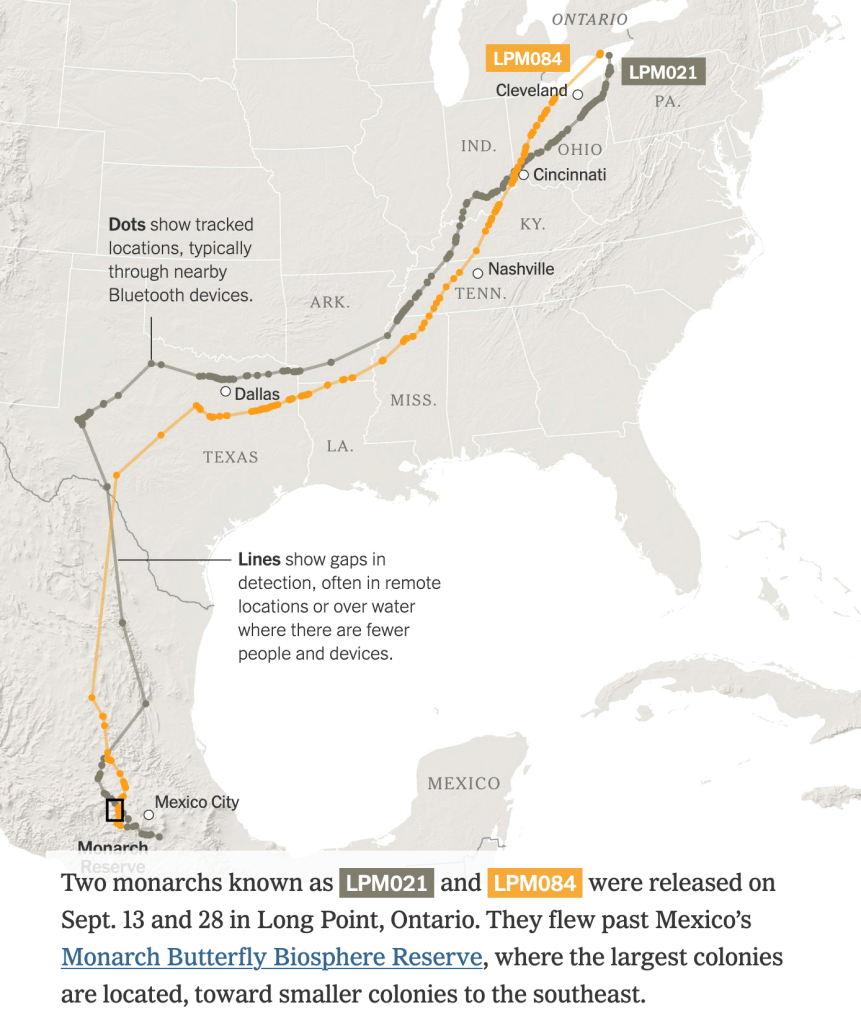 Sometimes strange, but interesting things show up in my feeds that I follow on the Internet. Recently one appeared that covered new technologies and monarch migration from the US to both Mexico and Florida.