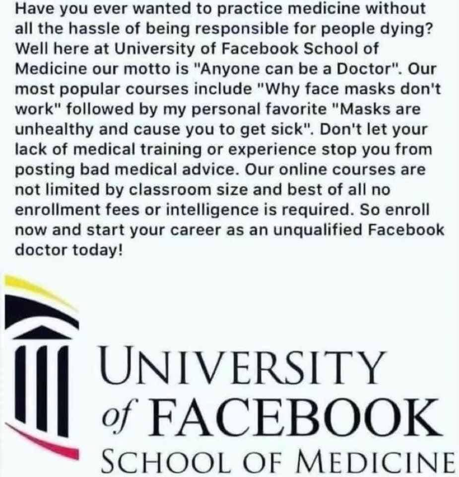 Yep, a lot of people have become unqualified Facebook doctors since the start of the pandemic. You to can!