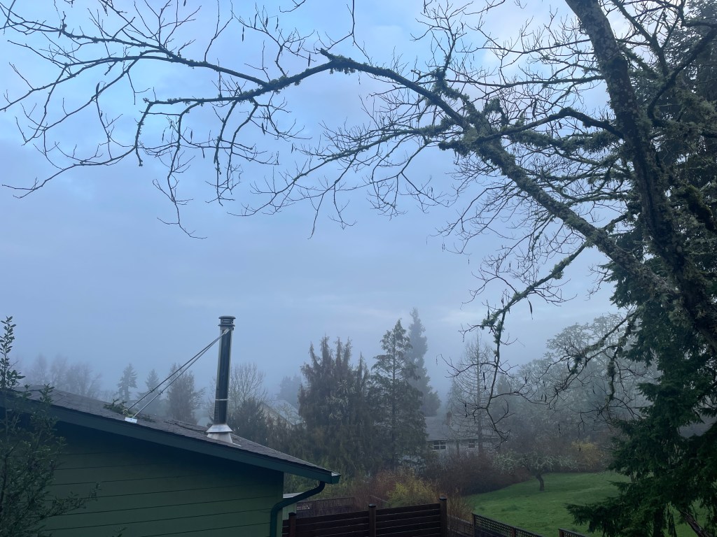 When I got up this morning it was a lot warmer than yesterday (47F versus 31F) and while it’s overcast and foggy it’s not raining.