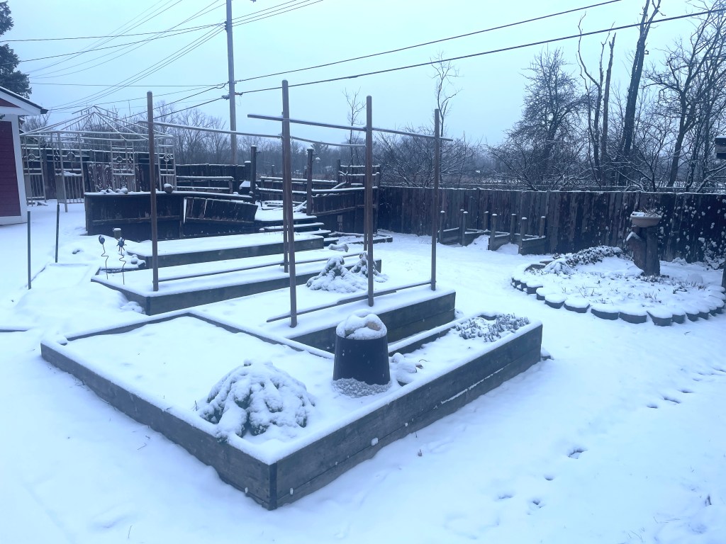 But yesterday but me back to the reality that this is still February in Michigan. The garden is once again covered with snow. And it’s almost time to head south to visit friends in North Carolina, Florida and Alabama.