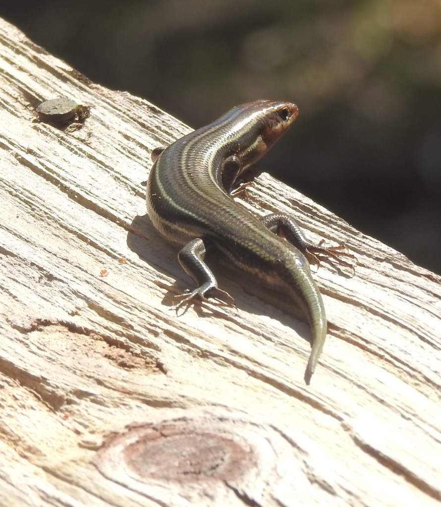 An adult Southeastern five-lined skink, the most common amphibian on the boardwalk.